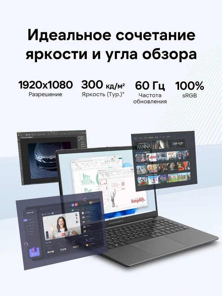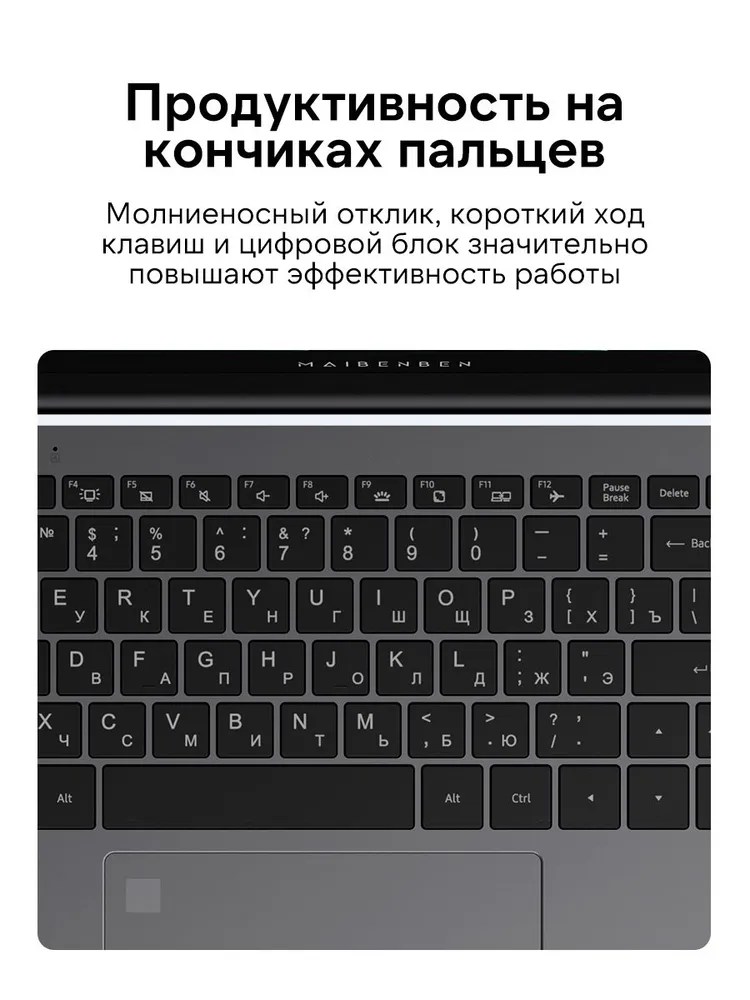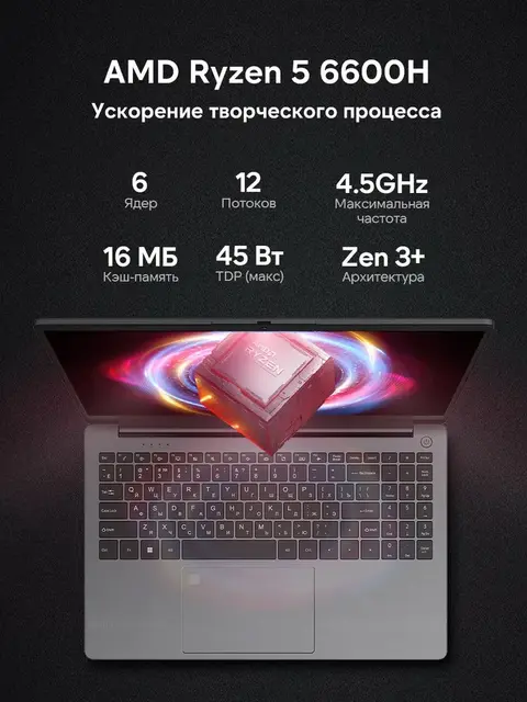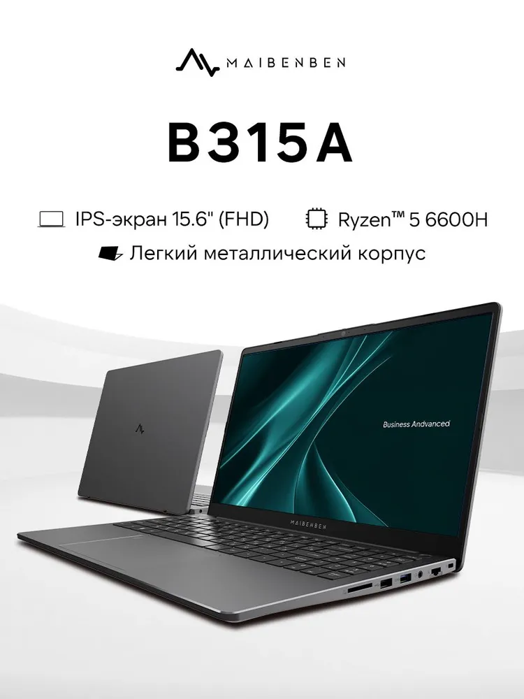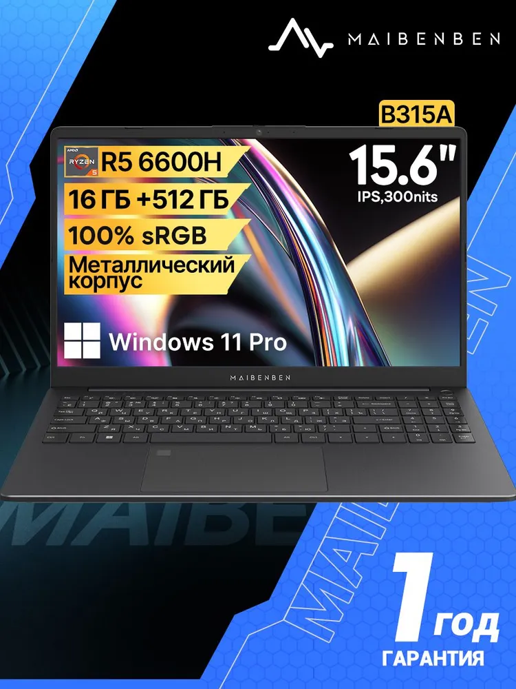 MAIBENBEN Ноутбук 100% SRGB Ноутбук 15.6", AMD Ryzen 5 6600H, RAM 16 ГБ, SSD 512 ГБ, AMD Radeon 660M, Windows Pro, серый металлик, Русская раскладка
