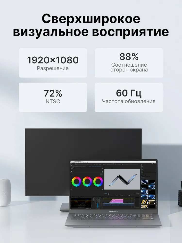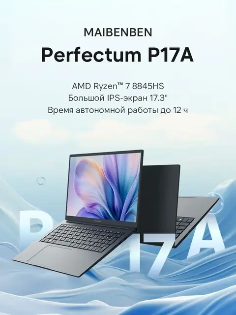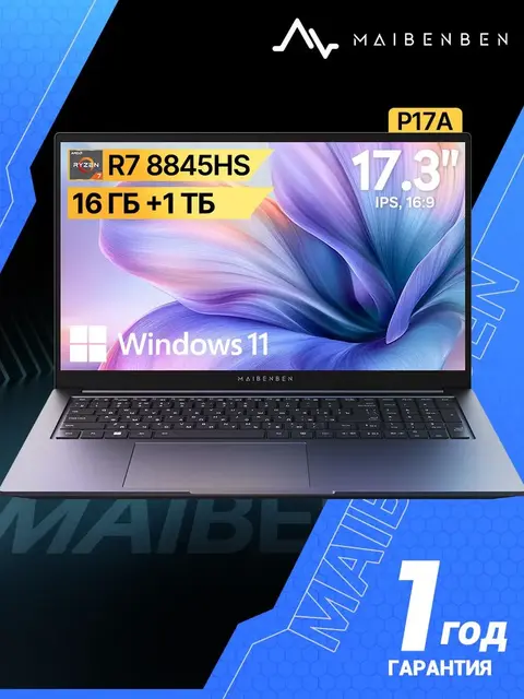 MAIBENBEN P17A металлик на стороне А,DCI-P3 100% IPS,Windows 11 Ноутбук 17.3", AMD Ryzen 7 8845HS, RAM 16 ГБ 1024 ГБ, AMD Radeon 780M, темно-серый, Русская раскладка