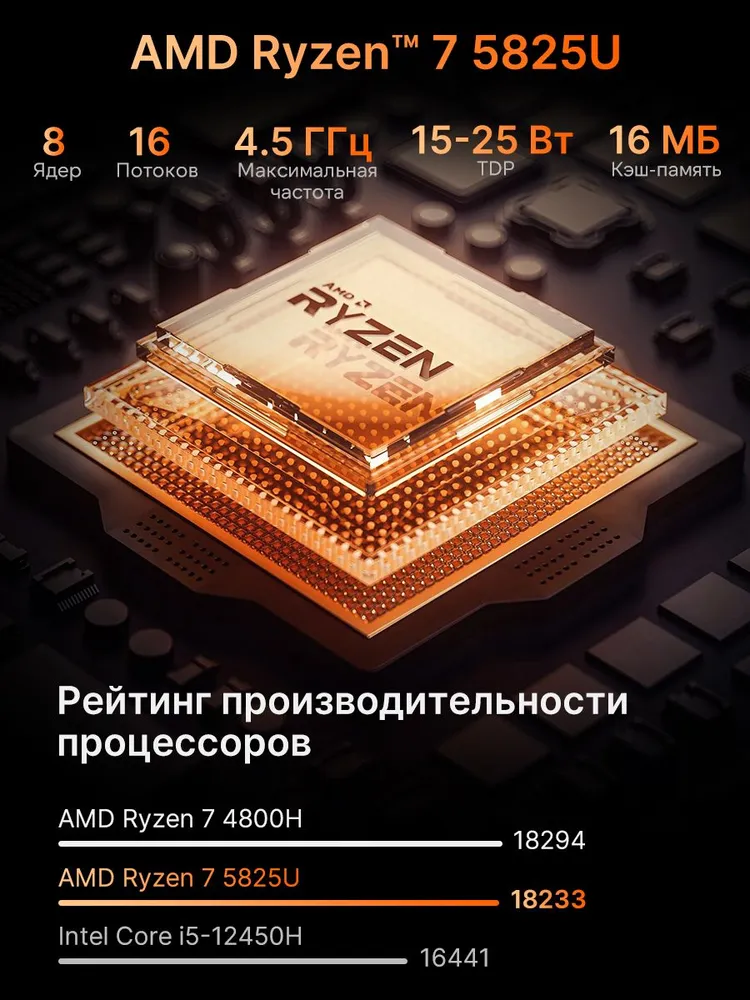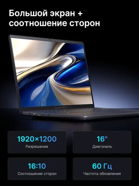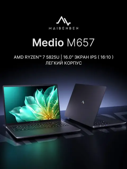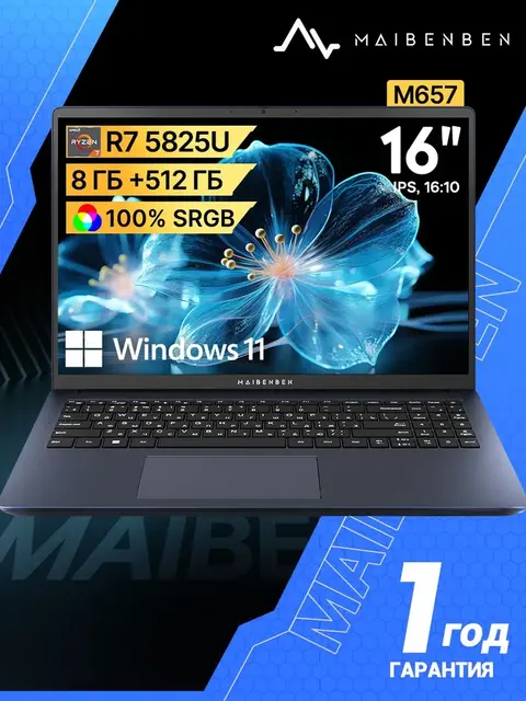 MAIBENBEN M657 FHD(1920x1200) IPS 60Hz 100%sRGB Ноутбук 16.0", AMD Ryzen 7 5825U, RAM 8 ГБ, SSD 512 ГБ, AMD Radeon Graphics, Windows Home, темно-синий, Русская раскладка