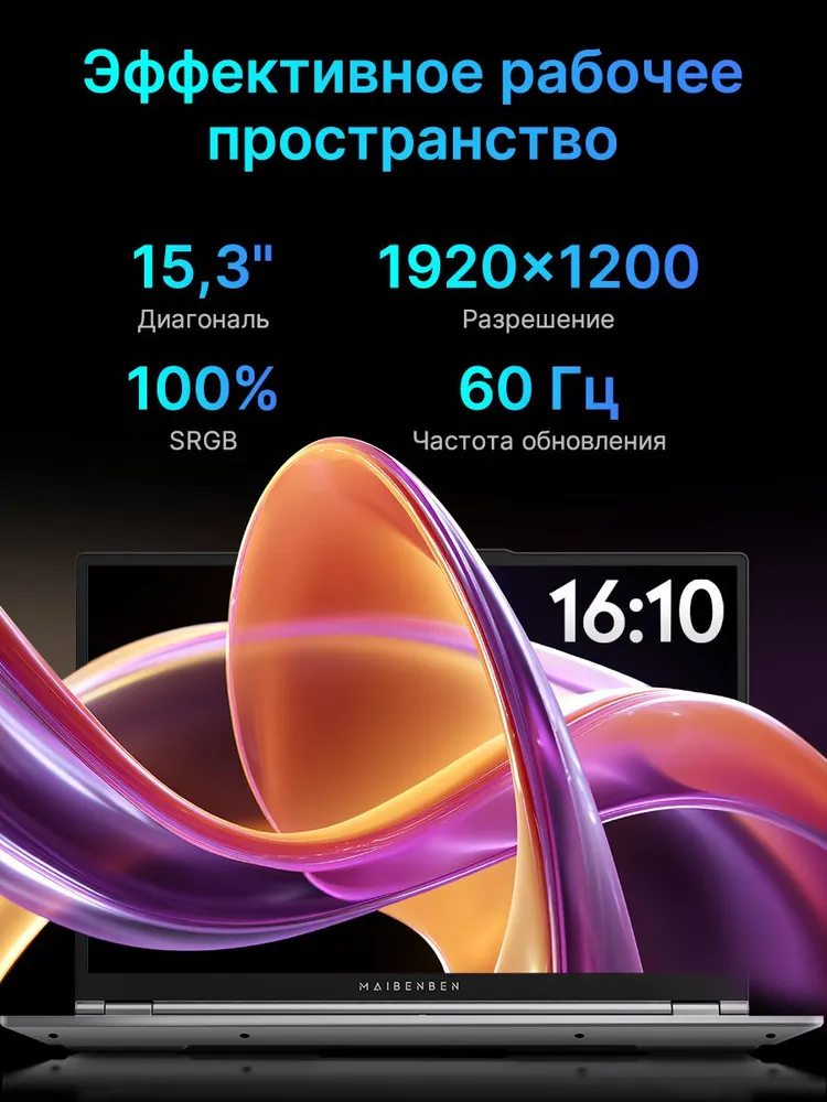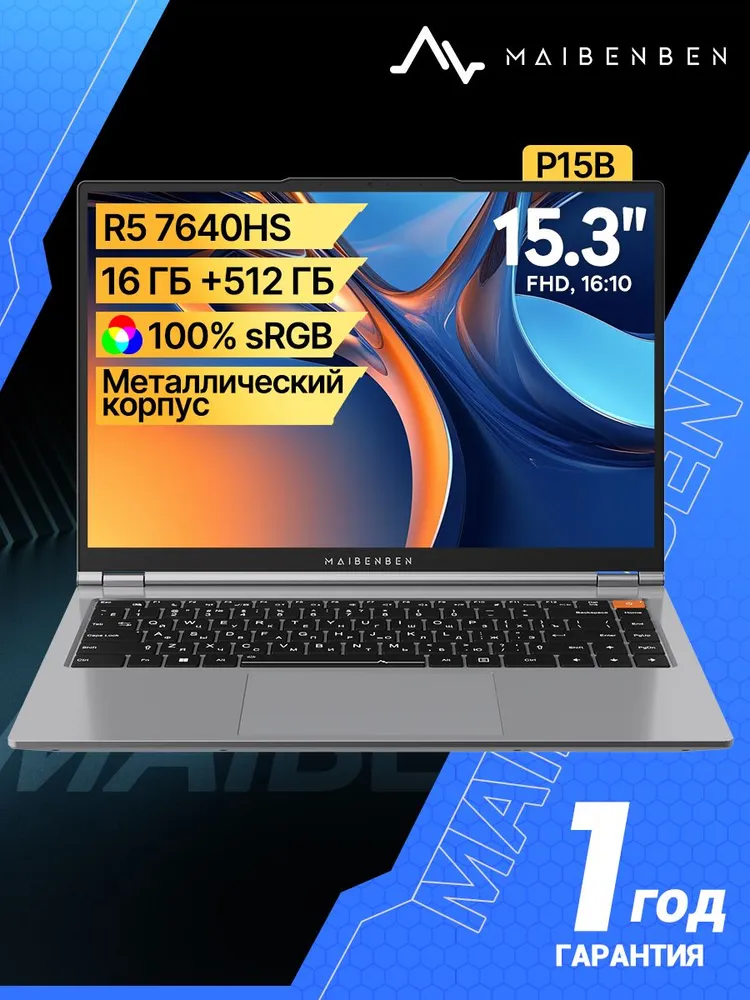 MAIBENBEN P15B металлик на стороне А,100% sRGB,IPS,Windows 11 Ноутбук 15.3", AMD Ryzen 5 7640HS, RAM 16 ГБ, SSD 512 ГБ, AMD Radeon 760M, Linux, темно-серый, Русская раскладка